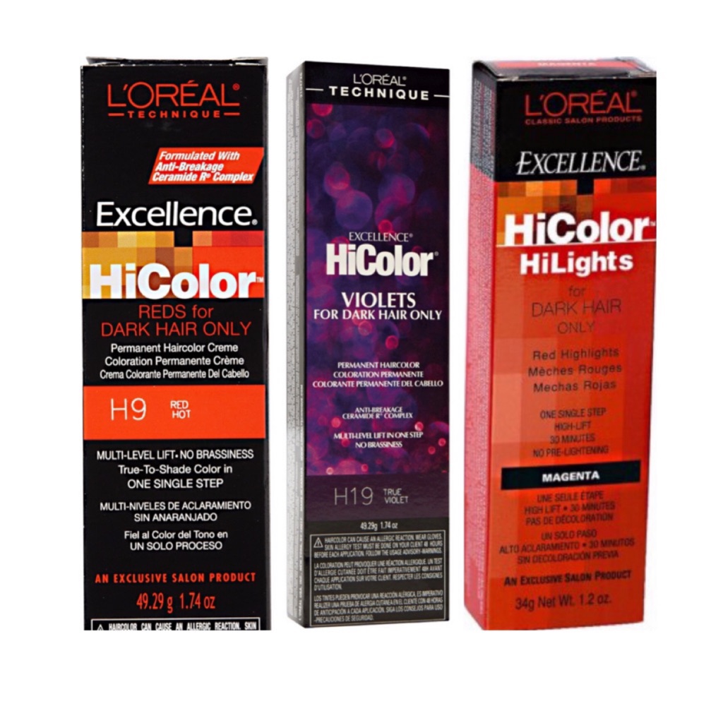 L oreal excellence hicolor blacks for dark hair only permanent hair color h22 black sapphire 1 74 oz l oreal excellence hicolor blacks for dark hair only permanent hair color h22 black sapphire 1 74 oz this collection represents a new and unique shade pallet for hicolor and l oreal technique and are perfect for your customers seeking violet blue plum hair color tones to their hair.